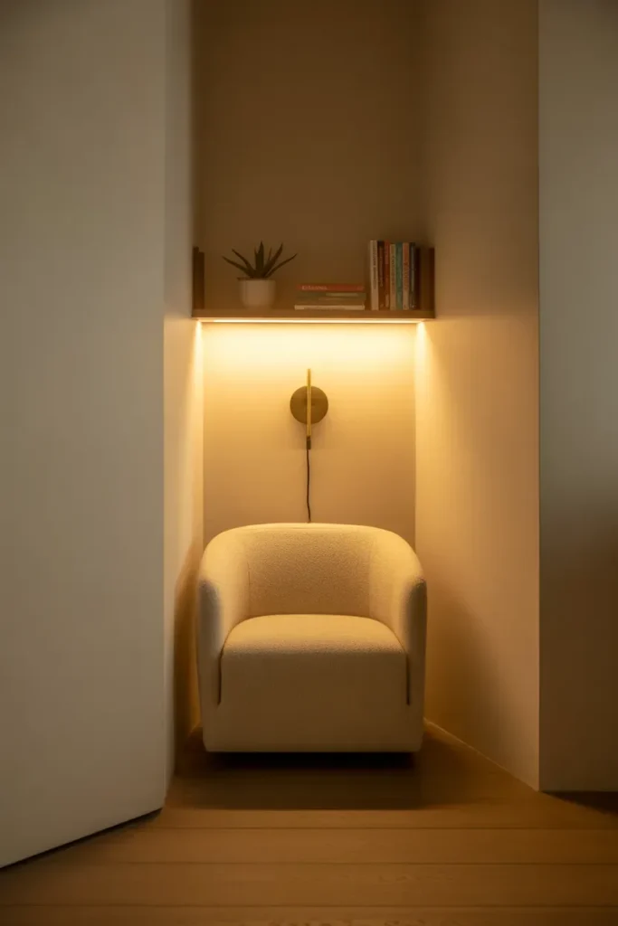 Even the smallest spaces can accommodate a cozy reading nook. A compact chair, wall-mounted shelf, and soft lighting are all you need to create a functional setup.