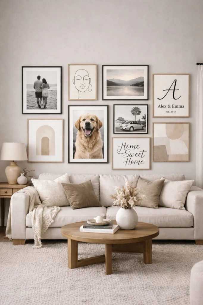 Large-scale art is often used to anchor a space, while smaller curated collections add intimacy. Designers recommend choosing artwork with calming color palettes or meaningful themes to enhance the room’s atmosphere. Frames and placement should feel intentional, contributing to a cohesive look. This trend emphasizes authenticity, ensuring living rooms feel unique and lived-in rather than staged.