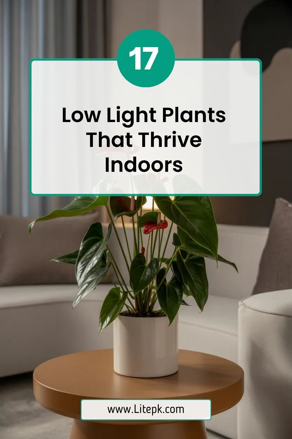 Anthuriums can tolerate low light while adding subtle color through their glossy leaves and flowers. They bring a refined and elegant touch.